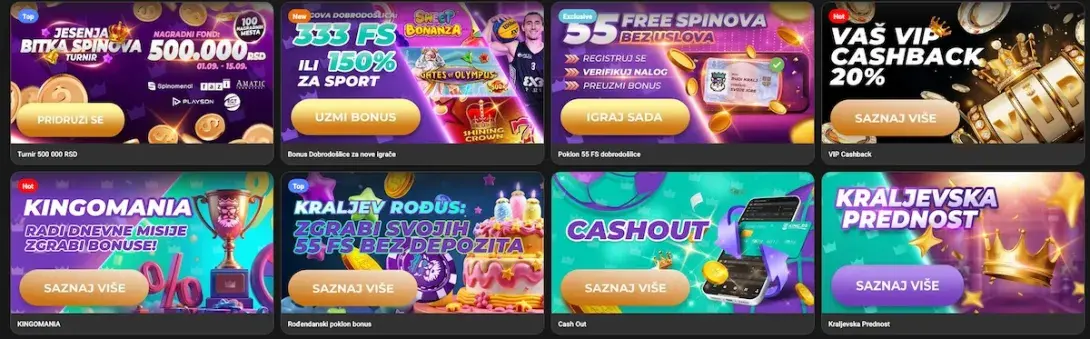 U 2025. godini posebno su se izdvojila casina koja nude kombinovane pakete bonusa – recimo, veliki broj besplatnih spinova uz solidan procenat kešbeka.