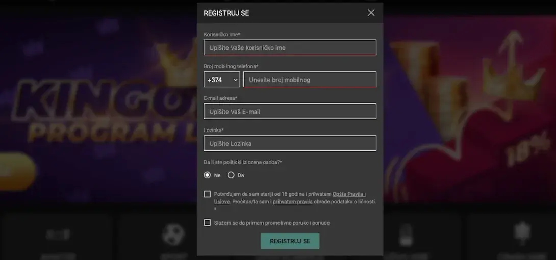 | Balkan Bet | 100% do 250€ | 95.5% | 500 RSD |